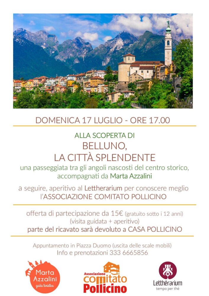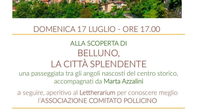 Una passeggiata accompagnati da Marta Azzalini che ci farà scoprire una Belluno inaspettata ed un aperitivo al Lettherarium per conoscere meglio l’Associazione Comitato Pollicino ed i suoi progetti.