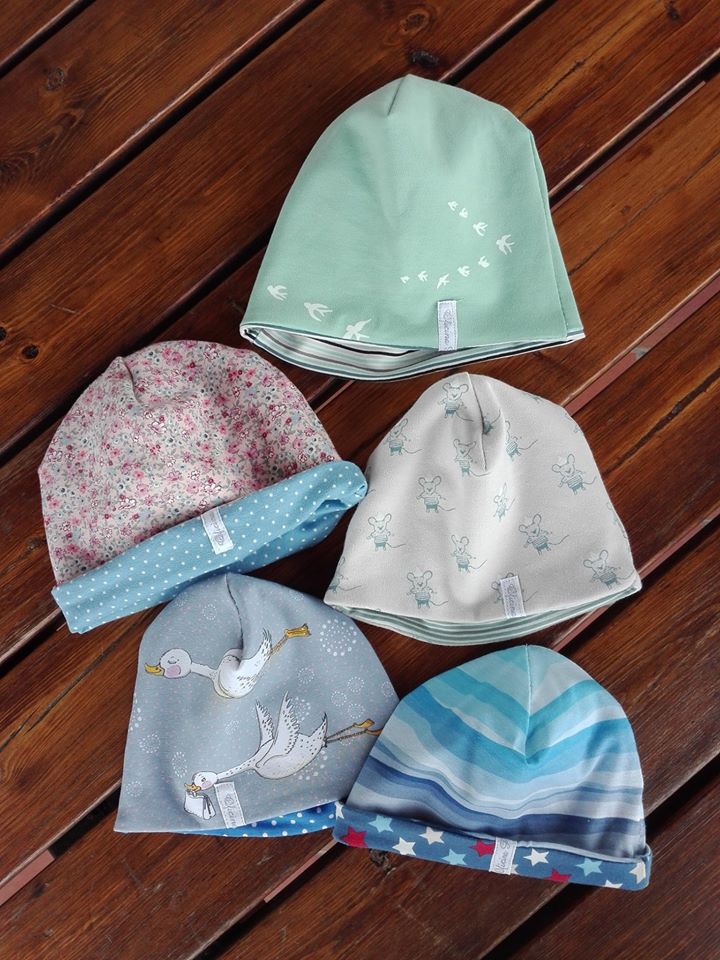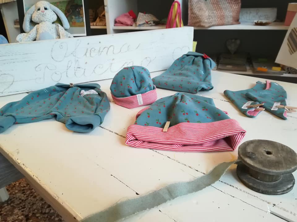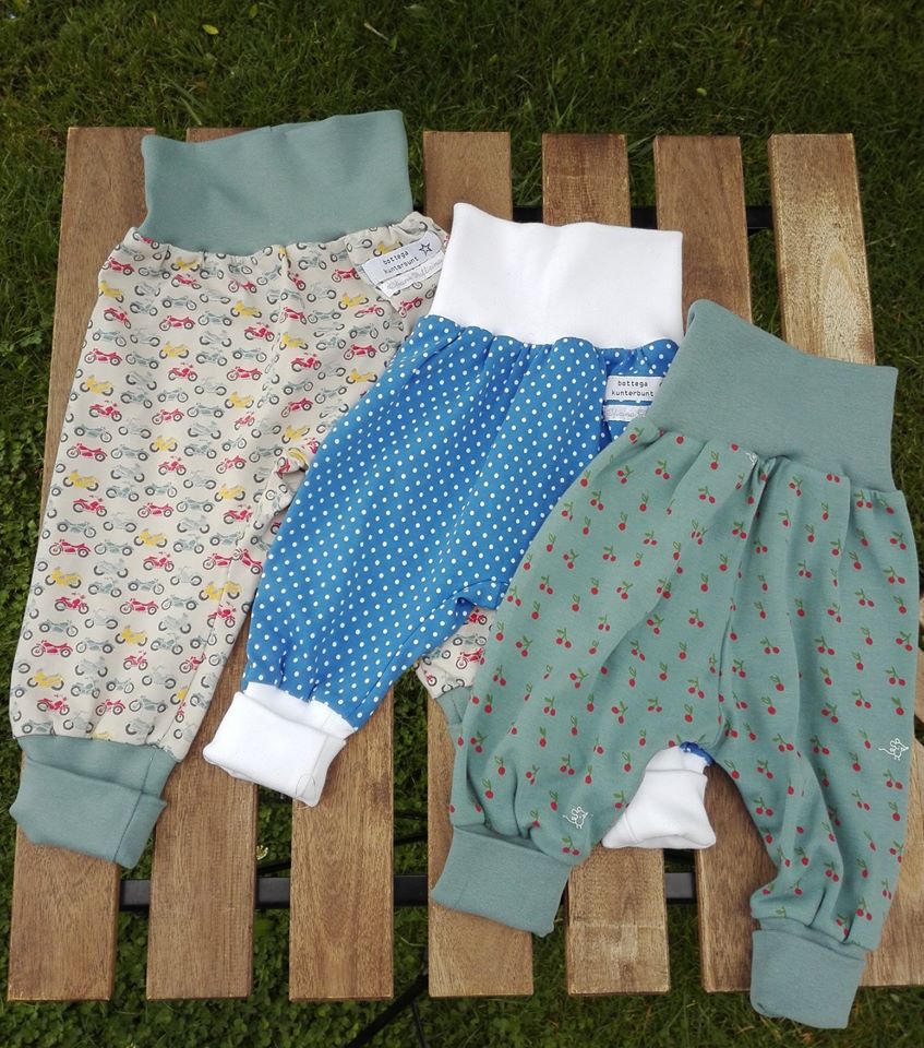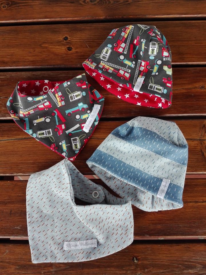 Oggi tocca a berrettini, braghette e bavaglini realizzati con le stoffe in jersey della Bottega Kunterbunt – Onlineshop!