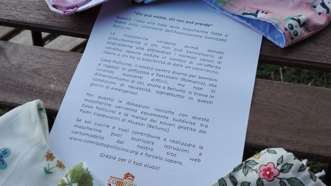 Inoltre la “cesta” delle nostre mascherine può essere riempita anche dalle vostre! Sul nostro sito www.comitatopollicino.org potete trovare le istruzioni per realizzarle per voi stessi o per donarle a chi ne ha bisogno!