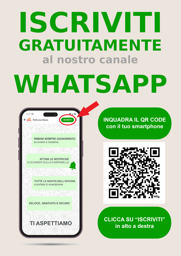 Iscriviti gratuitamente al nostro canale Whatsapp e resta sempre aggiornato sulle nostre attività e iniziative!